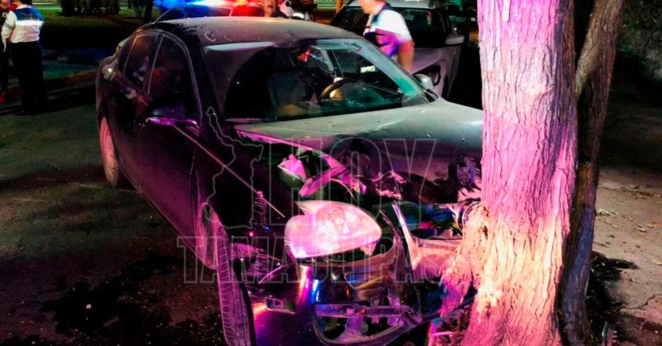 Veloz conductor casi se mata al chocar contra un árbol en Ciudad Victoria