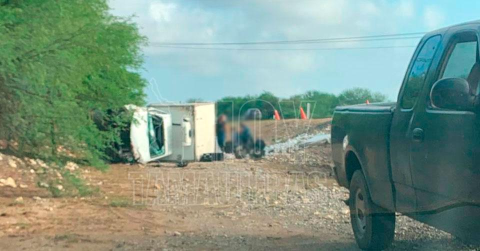 Vuelcan camioneta cargada de quesos en la Zaragoza-Victoria; dos lesionados