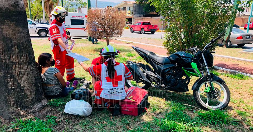 Pareja en moto se estrella contra camioneta y resulta lesionada