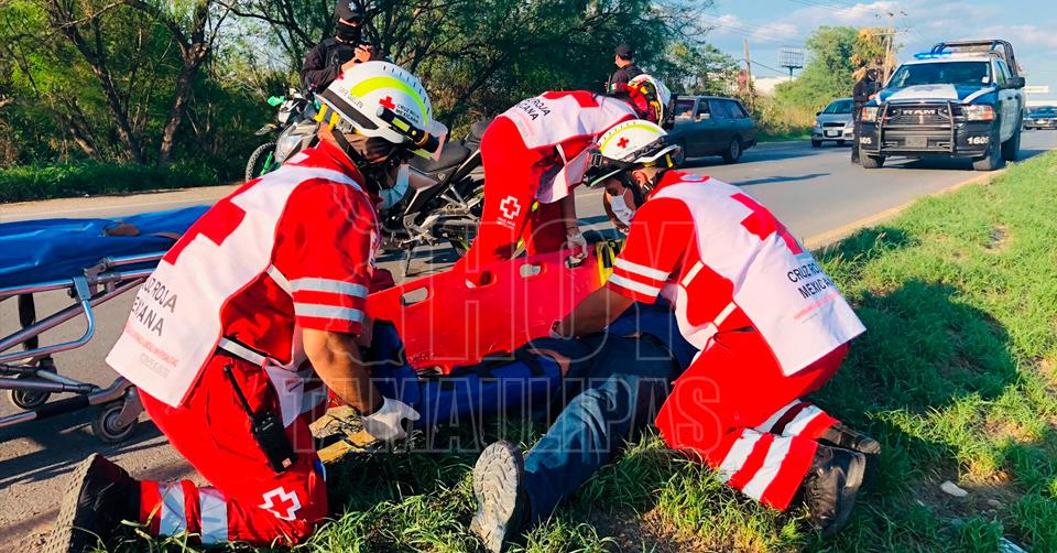 Motociclista omite alto y se impacta contra vehículo en Ciudad Victoria; en menor lesionado