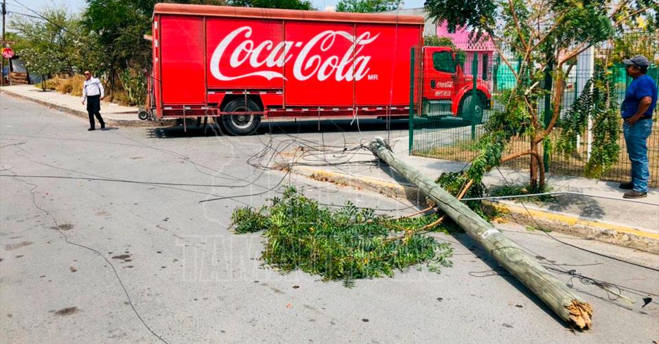 Camión de la Coca tumba postes de Telmex en Ciudad Victoria