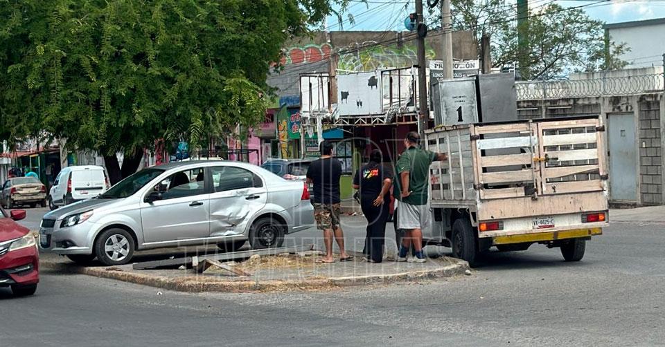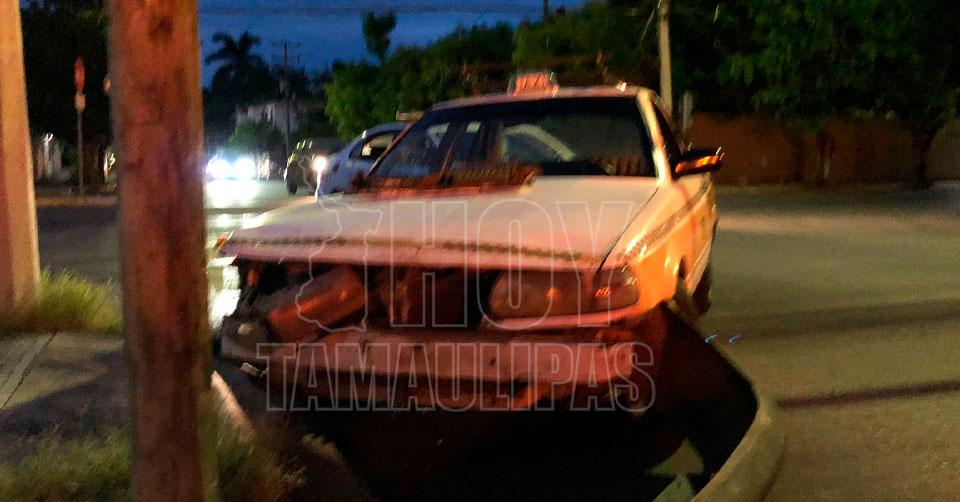 Chocan dos vehículos al ignorar señal de alto en Ciudad Victoria; taxista herido