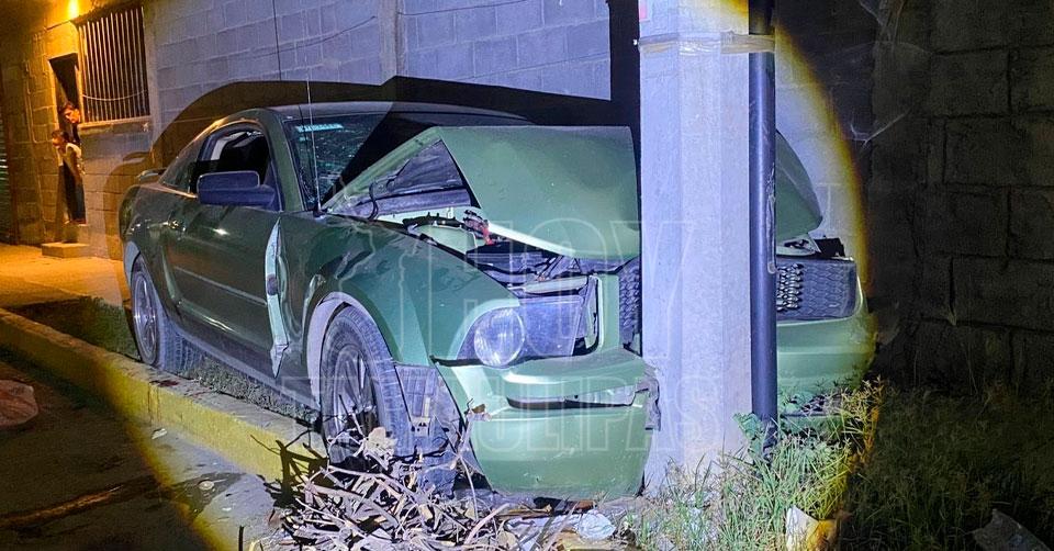 Destroza su Ford Mustang al impactarlo contra poste y barda en Victoria