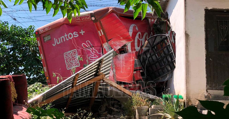 Camión de Coca-Cola sin frenos se mete a vivienda en Victoria; empleado lesionado