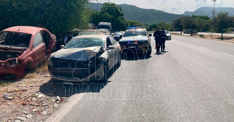 Choca automóvil contra camioneta en curva del libramiento Naciones Unidas en Victoria
