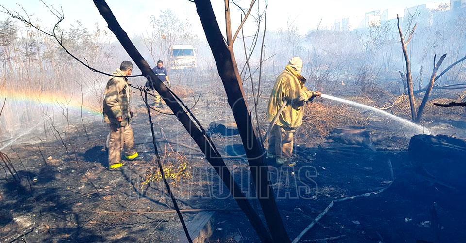 Evacúan a 10 personas por fuerte incendio de zacatal en Victoria