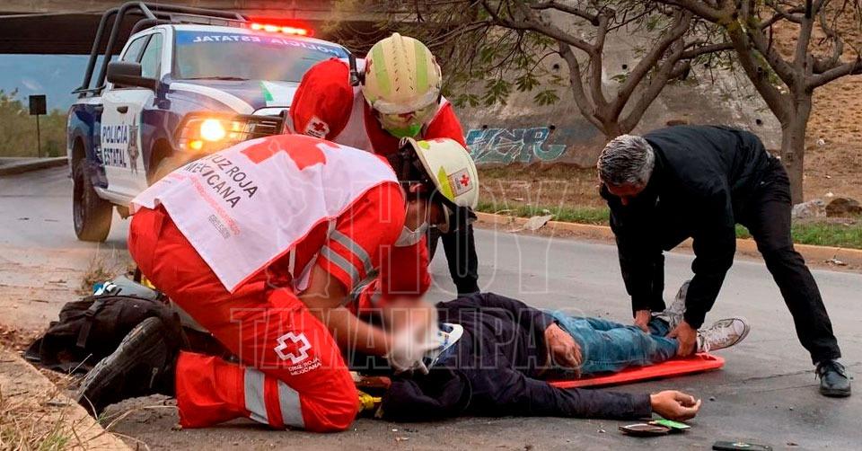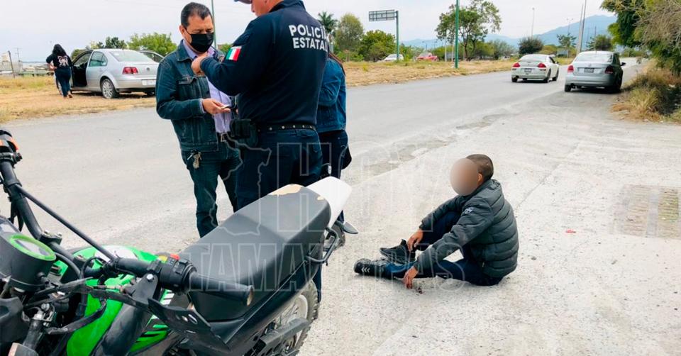 Motociclista intenta "paso de la muerte" y lo tumban en Ciudad Victoria