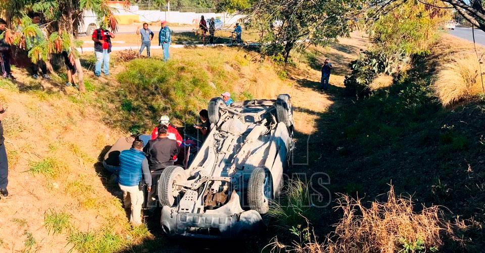 Volcadura deja una mujer lesionada en libramiento de Victoria