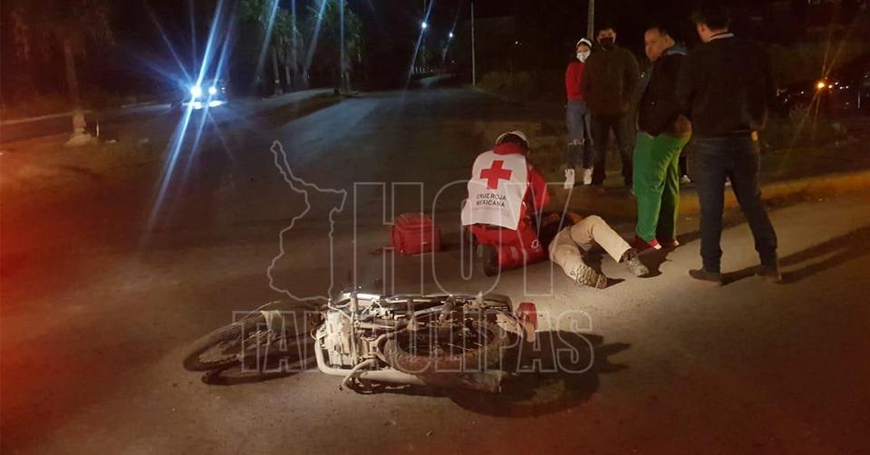 Ebrio motociclista se pasa alto y se estrella con carro en Ciudad Victoria
