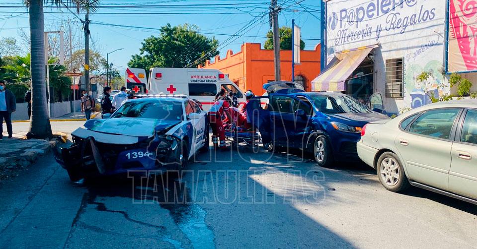 Patrulla de Tránsito municipal se ve involucrada en accidente vial en Ciudad Victoria