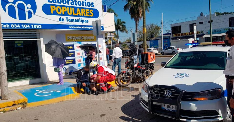 Derrapa motociclista por culpa de un charco de agua en Ciudad Victoria