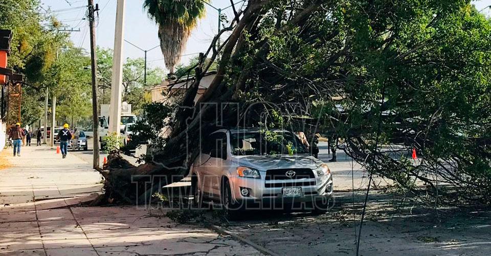 Enorme árbol cae sobre camioneta en la Calzada Tamatán de Victoria
