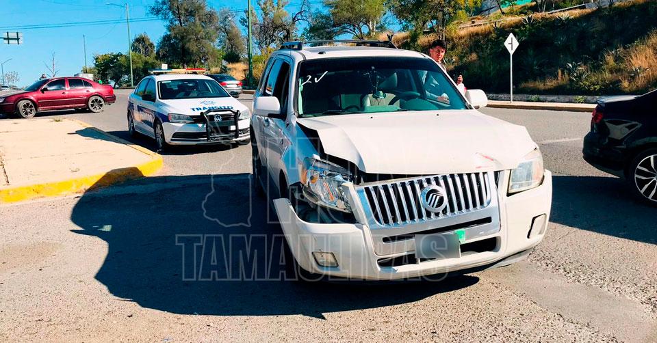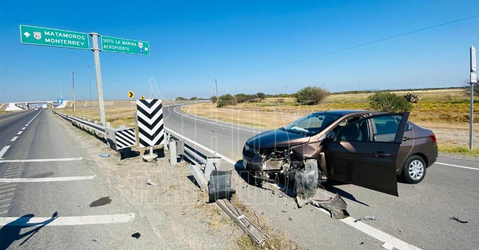 Mujeres casi se matan al chocar contra distribuidor vial en la Zaragoza-Victoria