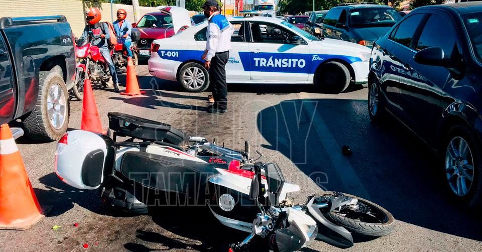 Le cierra el paso a motociclista y provoca que se “ensarte” contra carro en Victoria