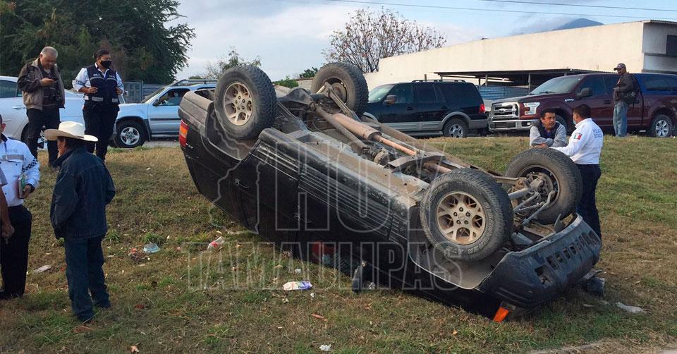 “Abuelito” vuelca en su camioneta tras esquivar coche en Ciudad Victoria