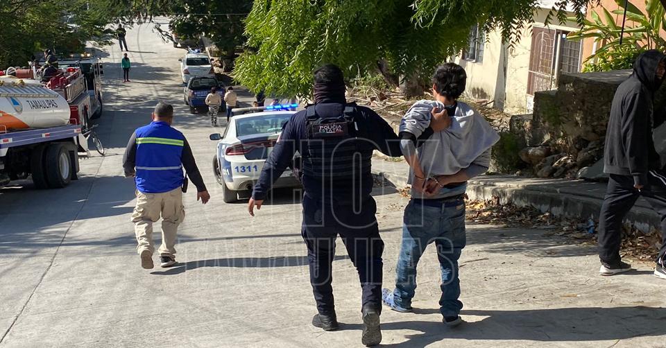 Hijo drogadicto le prende fuego a la cocina de su mamá y lo detiene la Estatal en Victoria