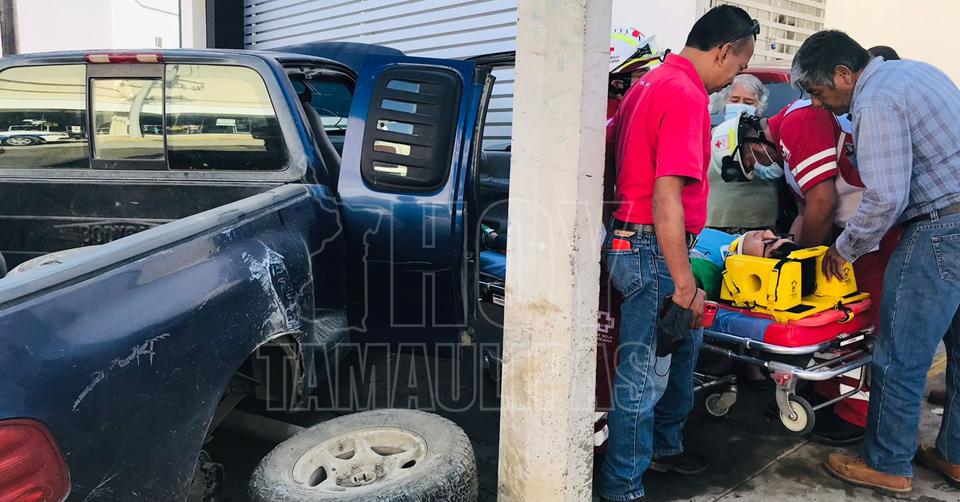 Tres lesionados por omitir alto; lo chocan y se proyecta contra banqueta en Ciudad Victoria