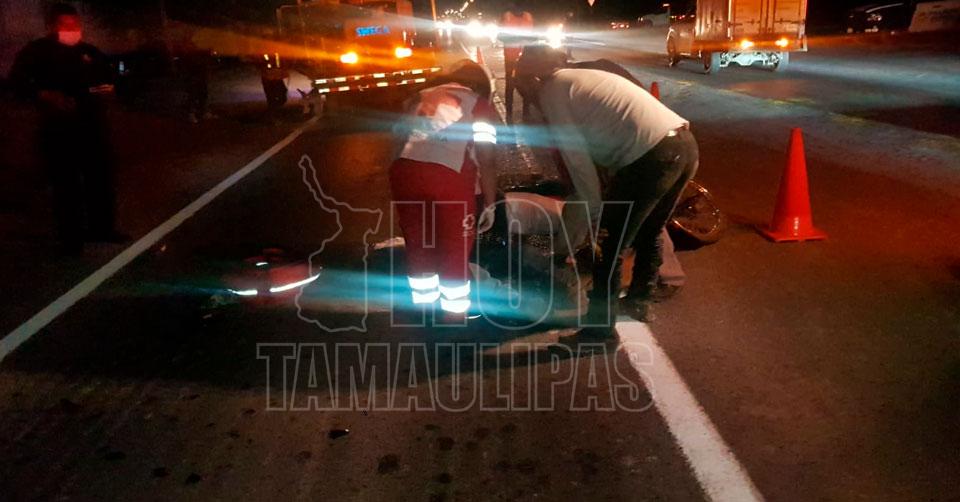 Cae de moto por darle un trago a la caguama en la carretera Victoria - La Marina