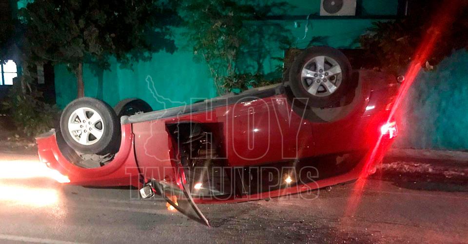 Choque con volcadura deja un lesionado en Ciudad Victoria; responsable abandona coche