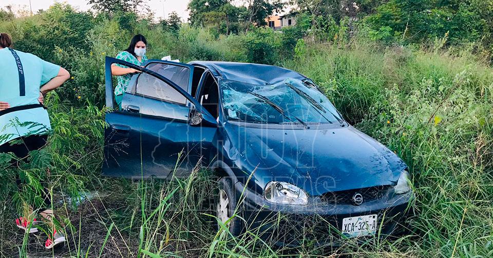 Choque y volcadura dejan a una mujer y sus menores hijos lesionados en Victoria