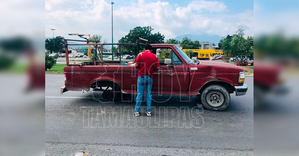 Se le zafa llanta a camioneta y golpea auto estacionado en Victoria