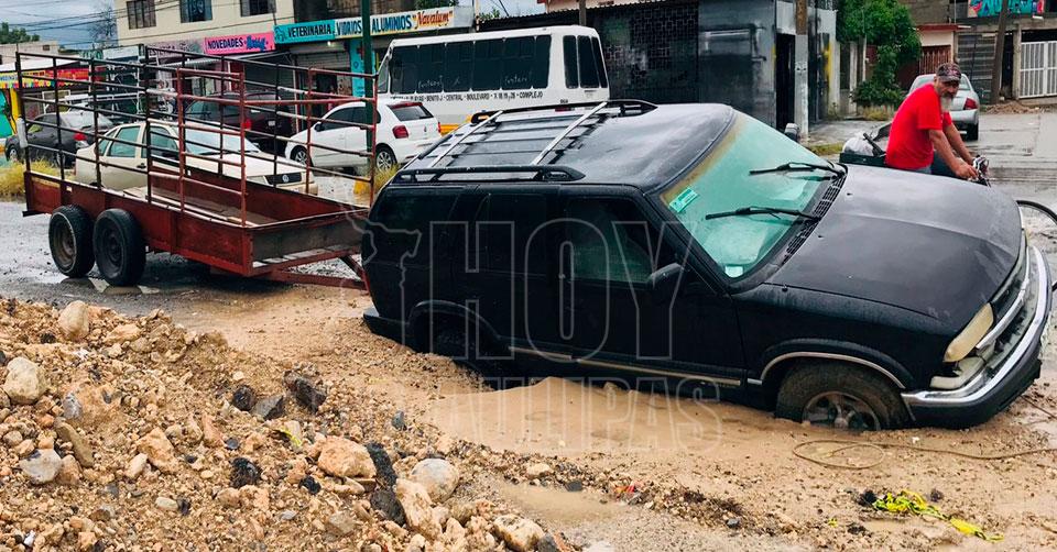 Pensaron que se los tragaría la tierra tras caer en pequeño bache en Ciudad Victoria