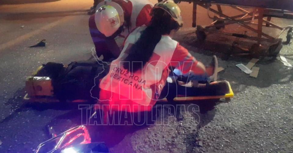 Motociclista intenta rebasar y choca con vehículo en Victoria