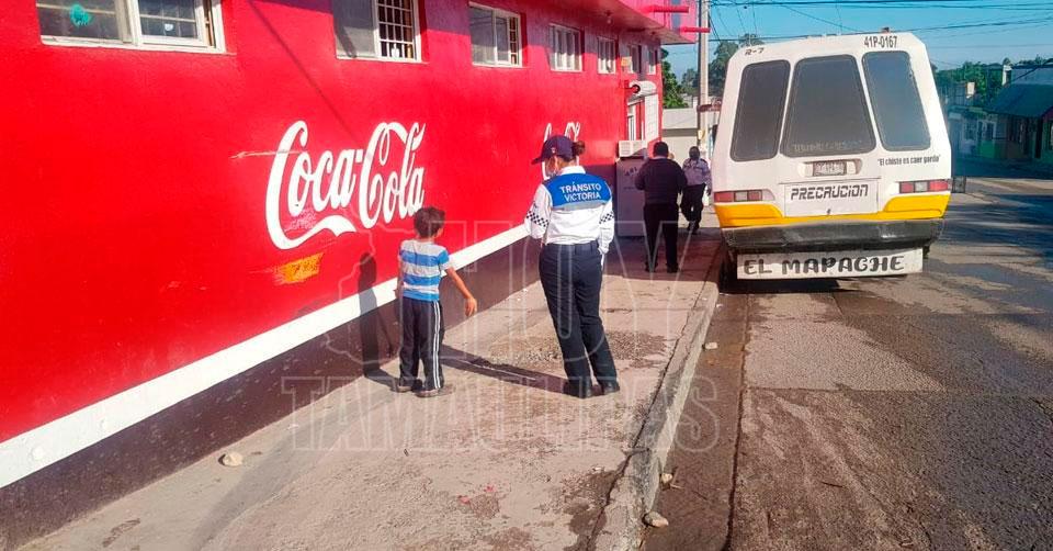 Microbusero casi tumba tienda de abarrotes al derrapar en Ciudad Victoria
