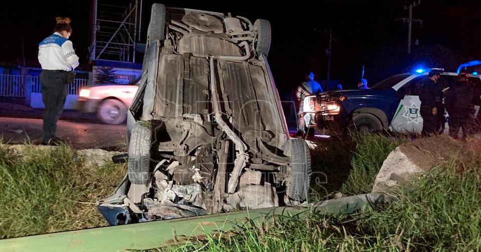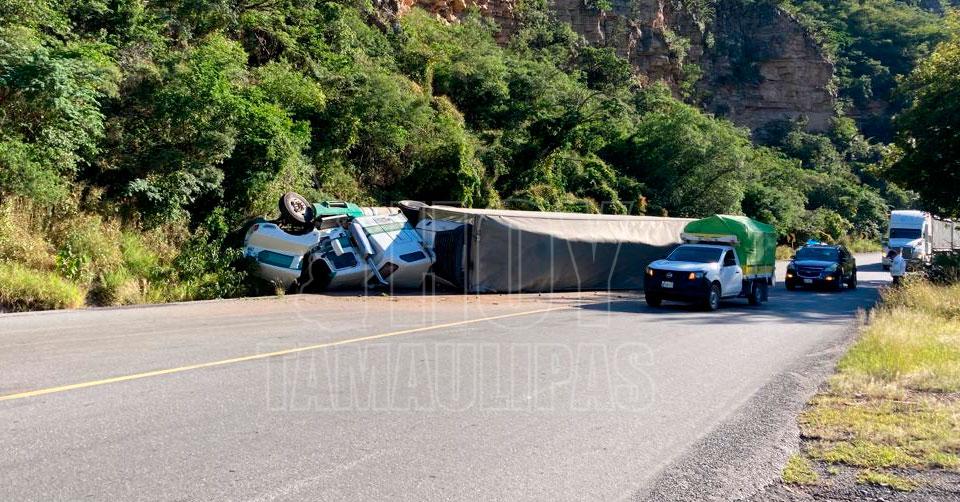 Conductor se salva de morir tras volcar en libramiento de Ciudad Victoria
