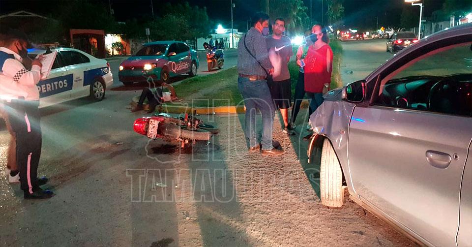 Mujer se mete en contra y tumba a motociclista en Ciudad Victoria