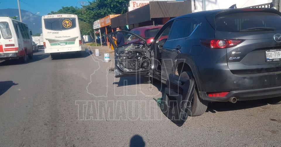 Imprudente conductora ocasiona que micro le arranque la puerta en Ciudad Victoria