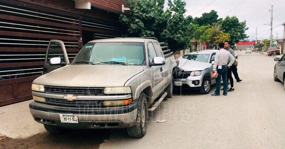 Por ir viendo el celular se “ensarta” contra camioneta estacionada en Ciudad Victoria