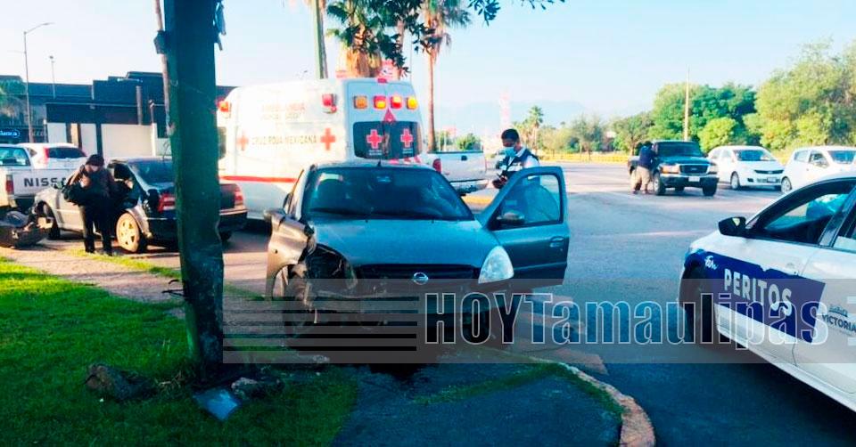 Se “ensarta” contra luminaria en Ciudad Victoria y culpa a los frenos