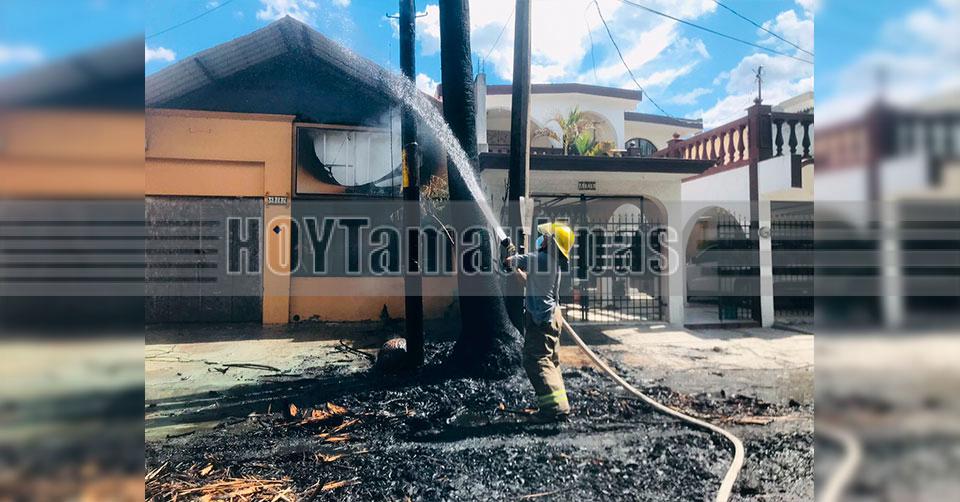 Corto circuito incendia y acaba con palmera en Ciudad Victoria