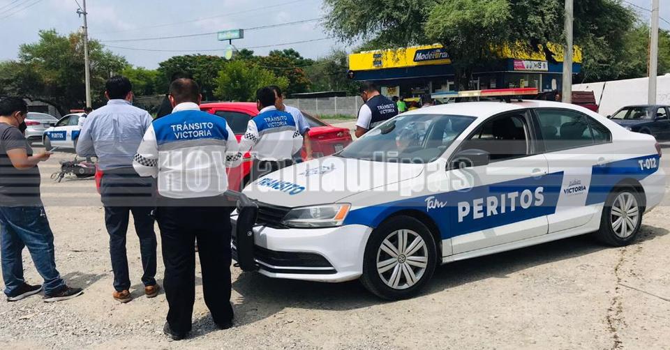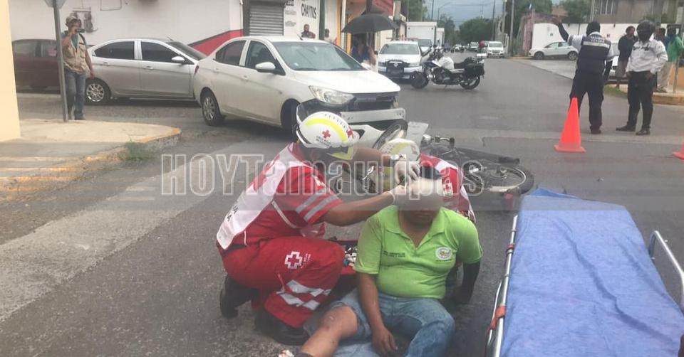 Conductor se pasa alto y tumba a motociclista en Ciudad Victoria