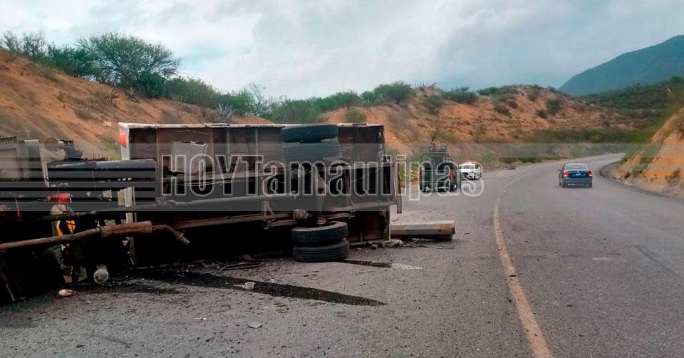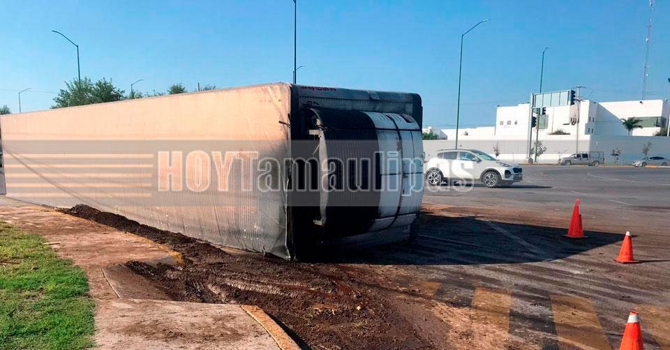 Vuelca tráiler frente a la FGJ en Ciudad Victoria; hay un lesionado