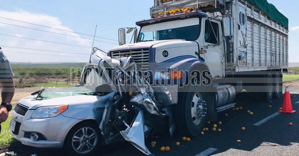 Conductora invade carril y choca con tráiler en la Rumbo Nuevo; hay dos lesionadas