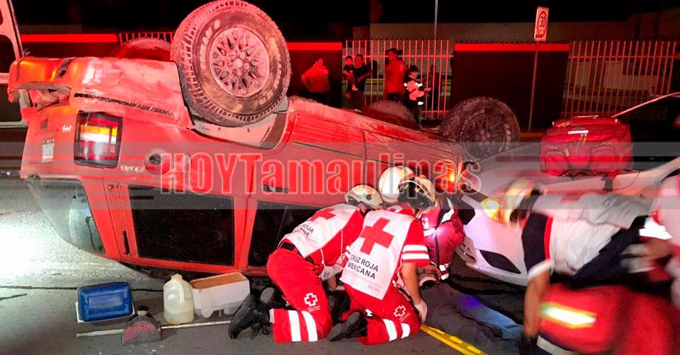 Ebrios casi se matan tras volcadura en Ciudad Victoria