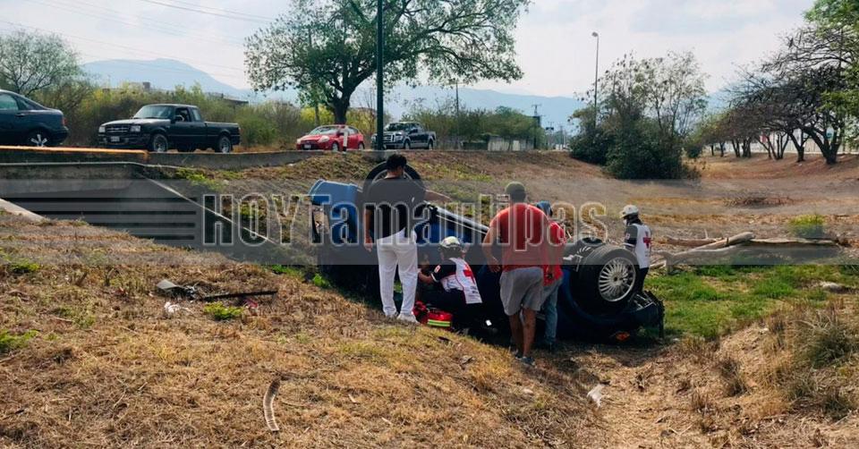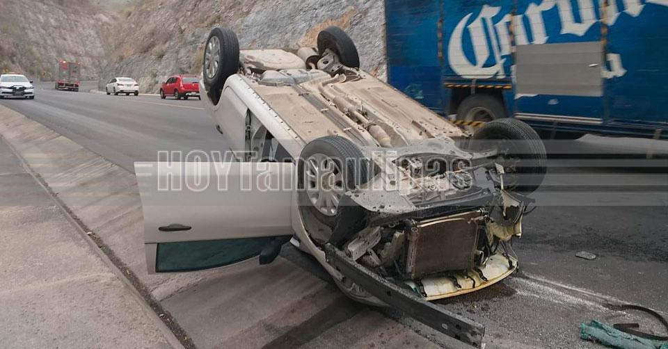 Conductora se marea y vuelca en libramiento de Ciudad Victoria