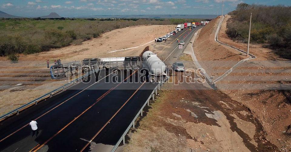Vuelca pipa cargada con 60 mil litros de diésel en la Zaragoza-Victoria