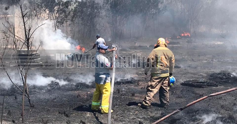 Vecinos de la Mainero en Ciudad Victoria apagan incendio de pastizal