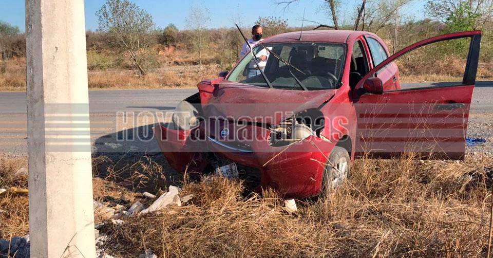 Automovilista sale ileso tras estrellarse contra poste en Ciudad Victoria
