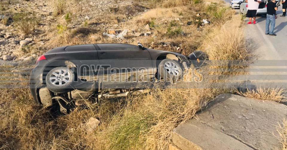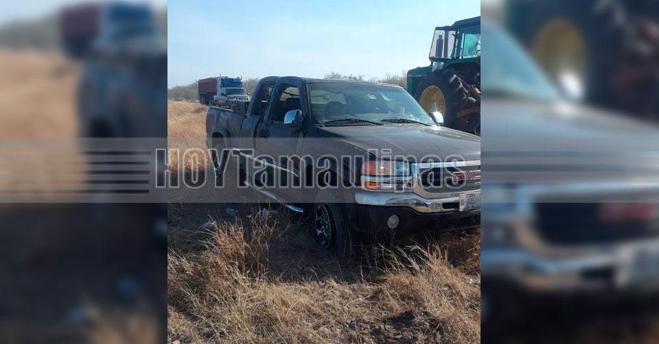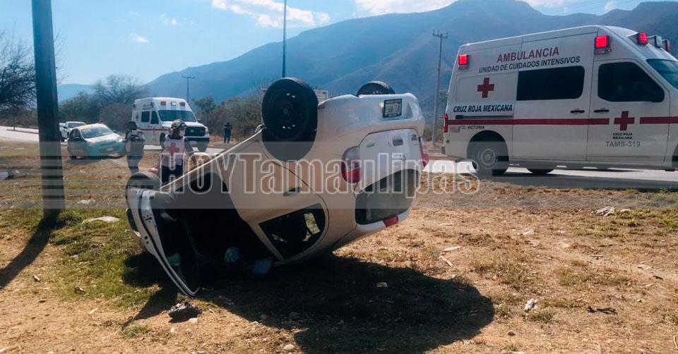 Volcadura de camioneta deja solo el susto a tripulantes en la Victoria-Matamoros