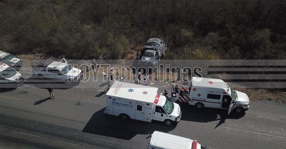 Vuelca camión de la Guardia Nacional en la Rumbo Nuevo; dos lesionados