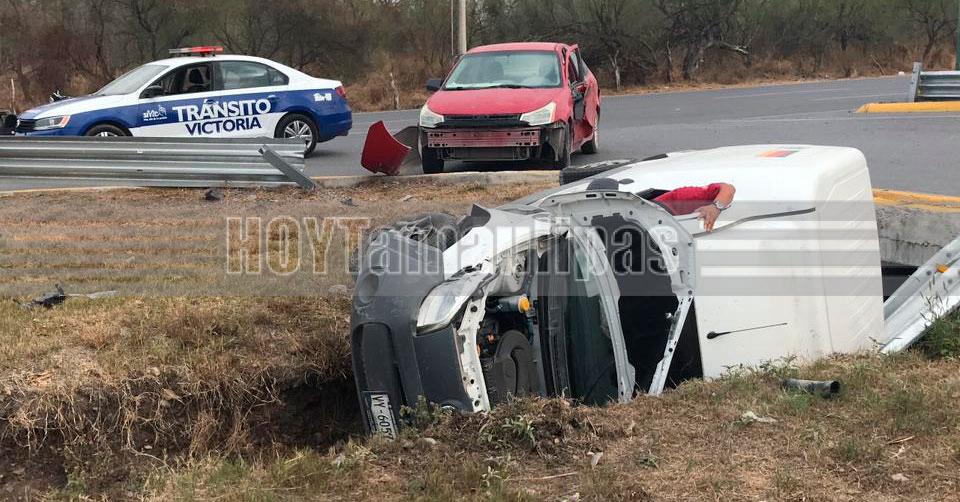 Choque con volcadura deja solo daños materiales en Ciudad Victoria