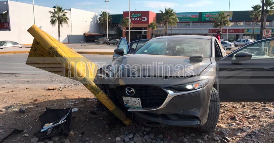 Por no chocar contra camioneta se impacta con un anuncio en Ciudad Victoria