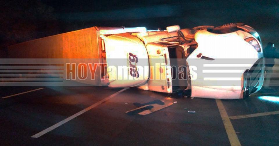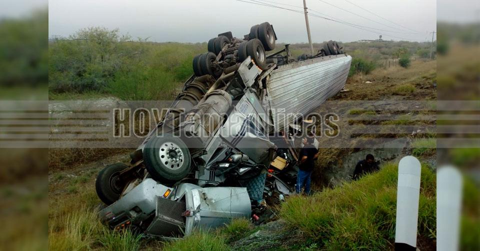 Familia resultó lesionada tras volcadura de tráiler en la carretera Victoria-Monterrey