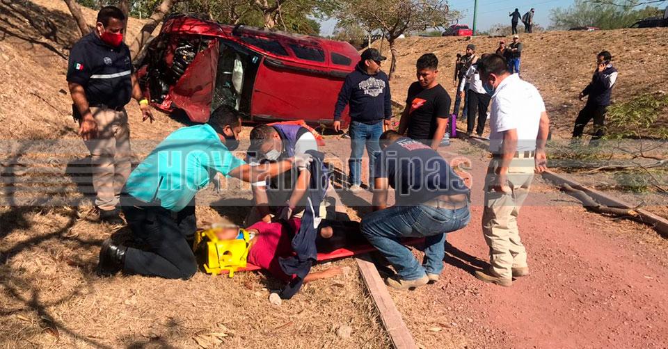 Volcadura deja dos mujeres graves en libramiento de Ciudad Victoria