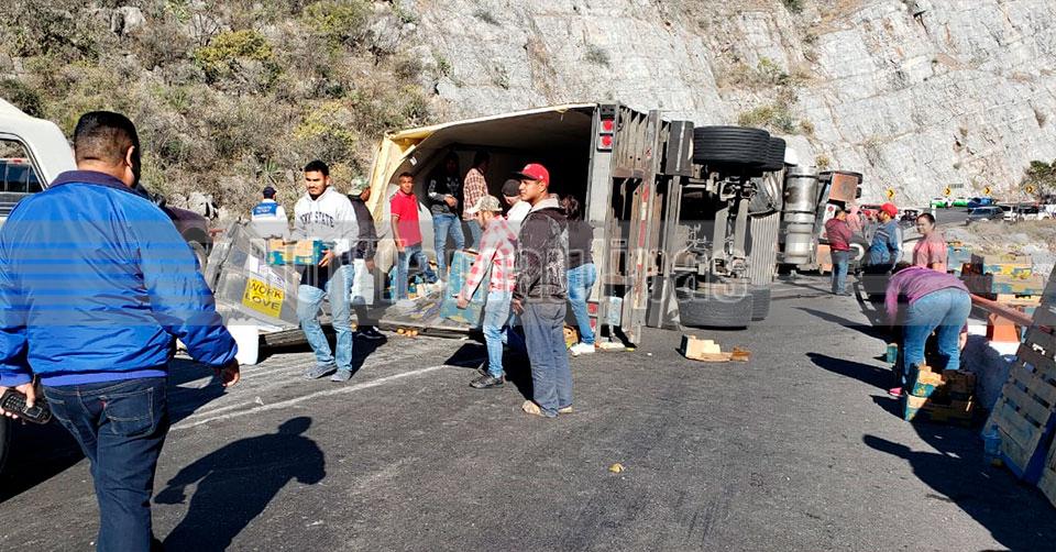 En Ciudad Victoria: Vuelca tráiler con tomate y aparecen los rapiñeros