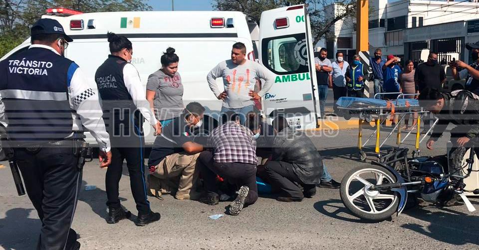 Conductor embiste a motociclista y lo manda al hospital en Ciudad Victoria